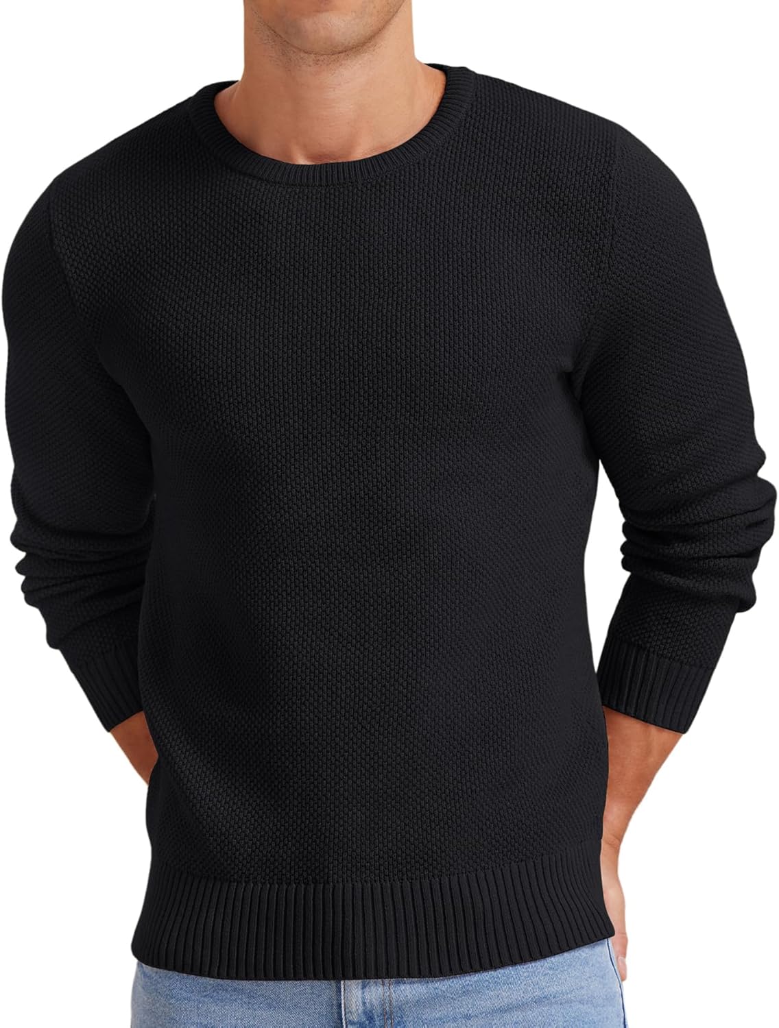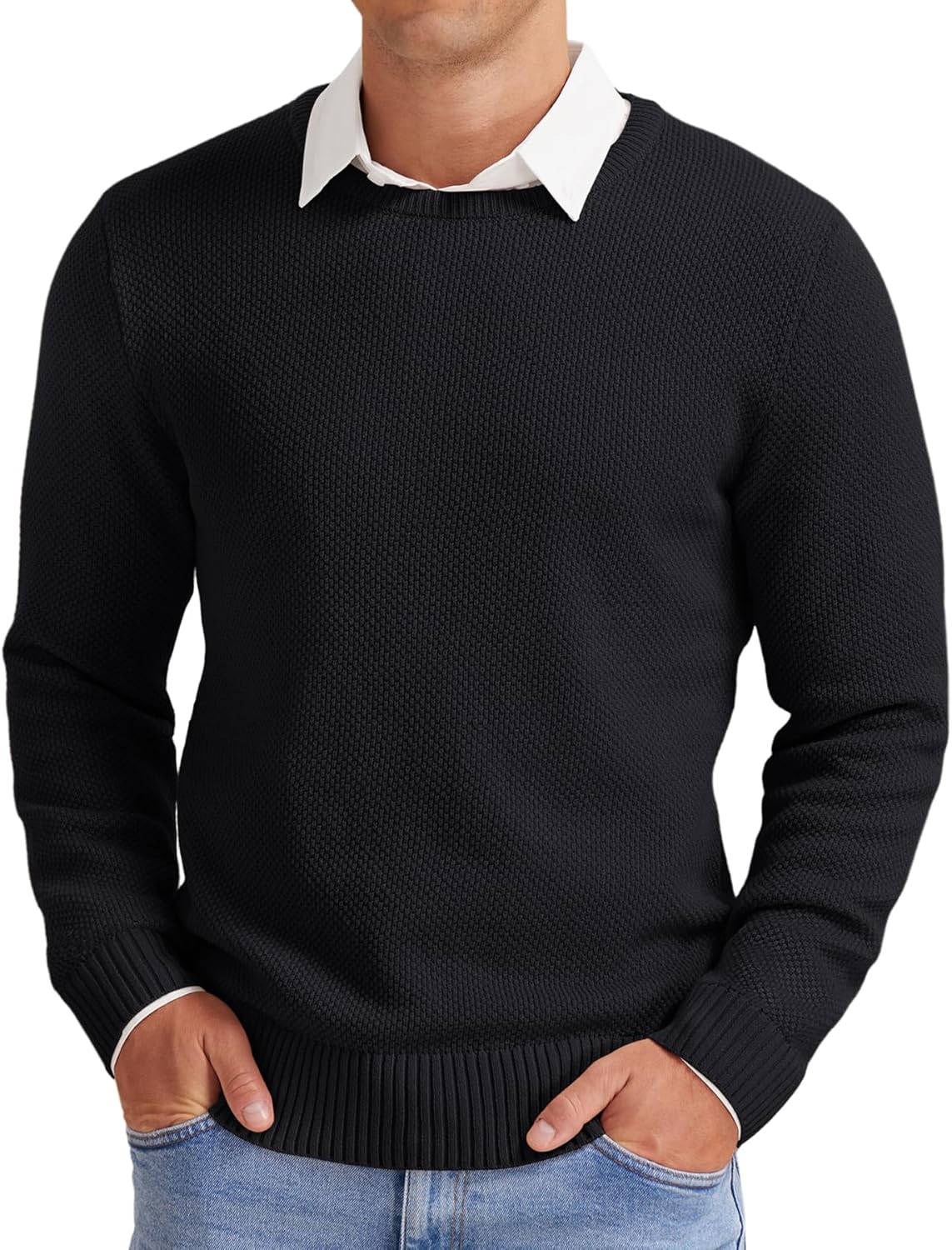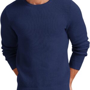 - FEATURES – Threaded crew neck/Classic design/Elastic ribbed hem. Solid color makes these men’s knit sweater classic and versatile, and the pattern adds extra texture.