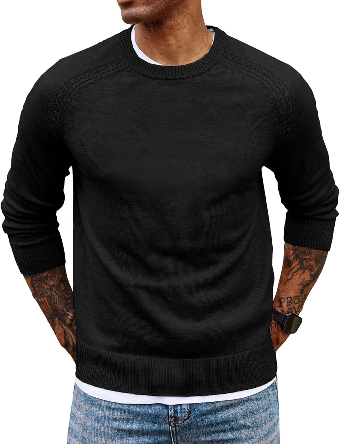 • Stylish Design: men crewneck sweater features classic crew neck, raglan long sleeves, solid color, ribbed neckline, sleeve cuffs and hemline. The slim fit provides a flattering fit.